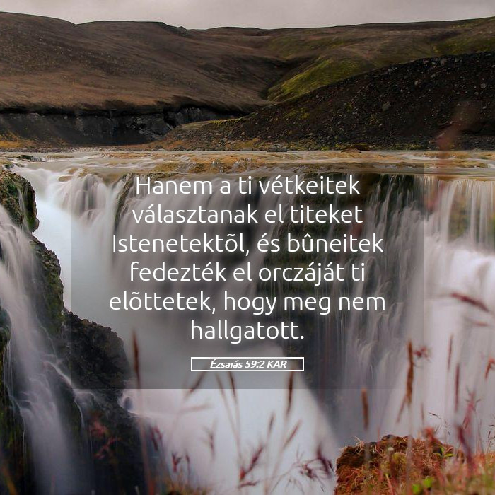 „Hanem a ti vétkeitek választanak el titeket Istenetektől, és a ti bűneitek fedezték el orcáját ti előletek, hogy meg nem hallgatott.”