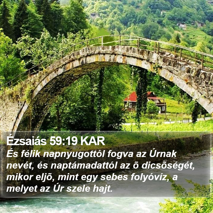 „És félik napnyugattól az Úr nevét, és napkelettől az ő dicsőségét; mert mikor eljő, mint egy sebes folyóvíz, amelyet az Úr szele hajt.”