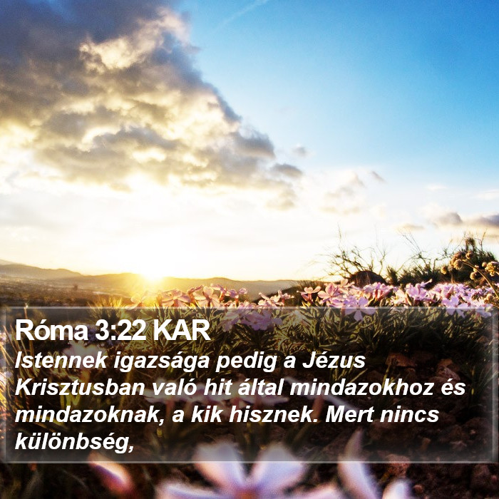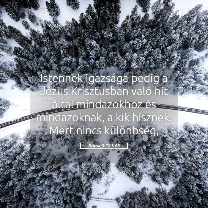 Róma 3:22 – „Istennek igazsága pedig a Jézus Krisztusban való hit által mindazoké és mindazokon, akik hisznek. Mert nincs különbség;”
