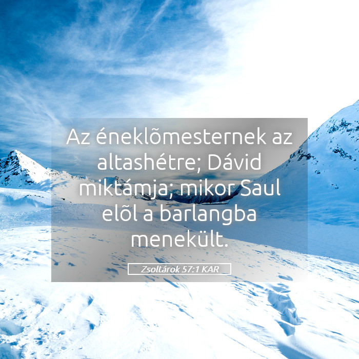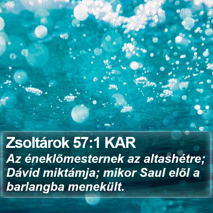 A 57. zsoltárt akkor írta Dávid, amikor Saul elől menekült, és egy barlangban rejtőzött el. Mégsem a kétségbeesésbe merült, hanem imádságban emelte fel hangját.