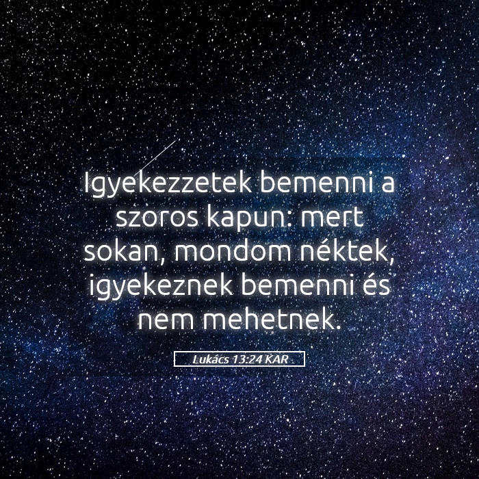 24 Igyekezzetek bemenni a szoros kapun; mert sokan, mondom néktek, igyekeznek bemenni, és nem mehetnek be.